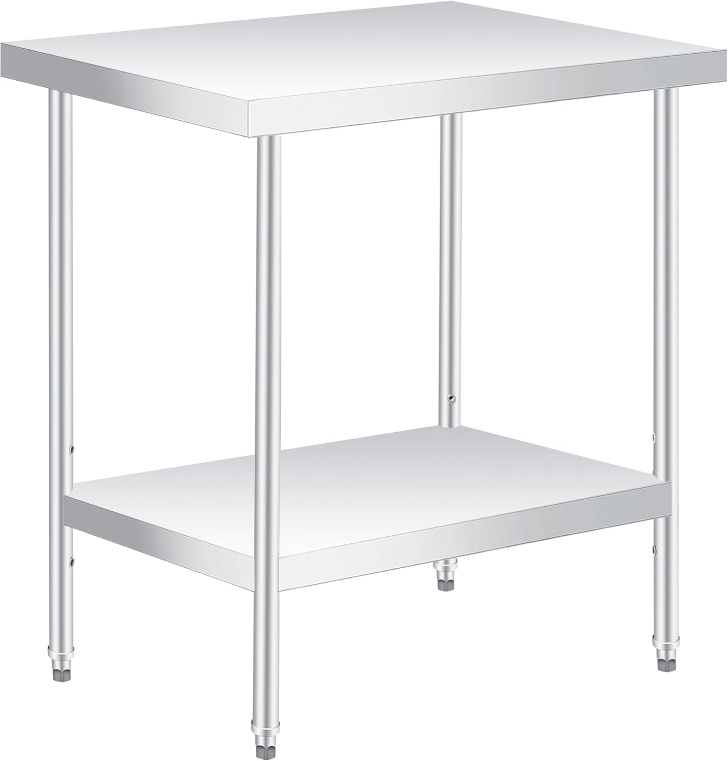 Maximize your kitchen efficiency with this compact stainless steel table—its durable design, adjustable shelf, and easy-to-clean surface make it the perfect prep station for home cooks or restaurant professionals!Highlights at a glance:Compact design ideal for small kitchens, apartments, or food trucks.Heavy duty stainless steel construction ensures durability and rust resistance.Adjustable under shelf with three height levels for flexible storage.Smooth stainless steel surface wipes clean effortlessly with a dishcloth.Easy assembly with clear instructions and labeled parts.Combines functionality and mobility for versatile kitchen use.Perfect as a prep table, work station, or utility surface.Specification:Weight capacity: 660+1100 lbsSize: 12x24x35 / 14x24x35 / 18x24x35 / 24x24x35 / 30x24x35 inches Color: silverMaterial: stainless steel Friendly note:Before starting assembly, please take a moment to review the provided instructions carefully.After assembly, ensure that all screws and bolts are tightened adequately for optimal stability.To maintain its condition, avoid abrasive cleaners or tools that can scratch the surface. Regularly clean it with a damp cloth.Packing list:1x Stainless steel table 1x Glooves1x Dishcloth1x Hardware bag1x Assembly guide