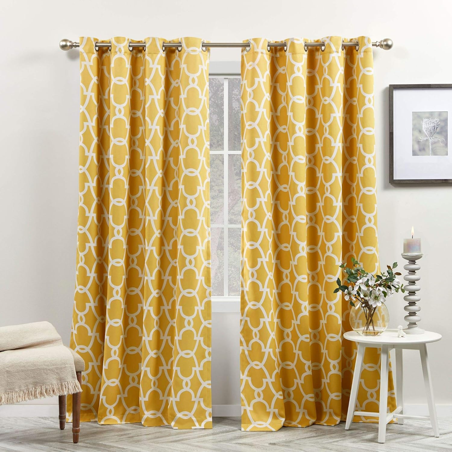 Product Description The Gates printed woven blackout thermal insulated grommet top window curtain panels provide a modern elegant look to any room in your home. The design with its visually clean lines and geometric style adds a contemporary look and is printed on a lush polyester fabric that feels rich as well. These woven panels drape beautifully and are interwoven with room darkening blackout insulation provided by LightBlock and Thermax technology. These panels will block light, prevent harmful UV rays from reaching your floors and furniture, efficiently prevents cold or heat transfer from outside, will increase energy efficiency of your home, provide unparalleled privacy, and allow you to create darkness at any time of day. Perfect drapery option for anyone seeking to block daylight, take a nap, or keep sun glare off your TV. The Gates drapery is constructed with gorgeous, matte silver grommets and can be hung on your favorite curtain rod up to 1.25" diameter, adding yet another touch to the richness and luxury of your decor. These window curtain panels will drape beautifully from any window that could use that perfect, finishing touch. Our curtain panels are perfect for any living room, bedroom, family room, dining room, bathroom and office. Our stylish designs will suit any window space. From the Manufacturer Amalgamated Textiles USA, Inc, is North America’s leading supplier of home textiles and ready-made drapery by delivering high fashion designs, patterns, varying textures, and colors in an “affordable luxury” quality that today’s consumers expect. From classic solids to today’s top fashion trends, you are sure to find window panels to fit any look, mood, or style to complete your home décor project. We offer an array of fabric constructions as well, including jacquards, linens, burlap, sheers, thermal/blackout, silk and faux silks, polyester and poly blends, and cotton and cotton blends. These constructions are offered in varying designs and colors including solids, prints, textures, thickness, lengths, widths, and burnouts. Like millions of customers already have, let our window coverings be the anchor of each room in your home!