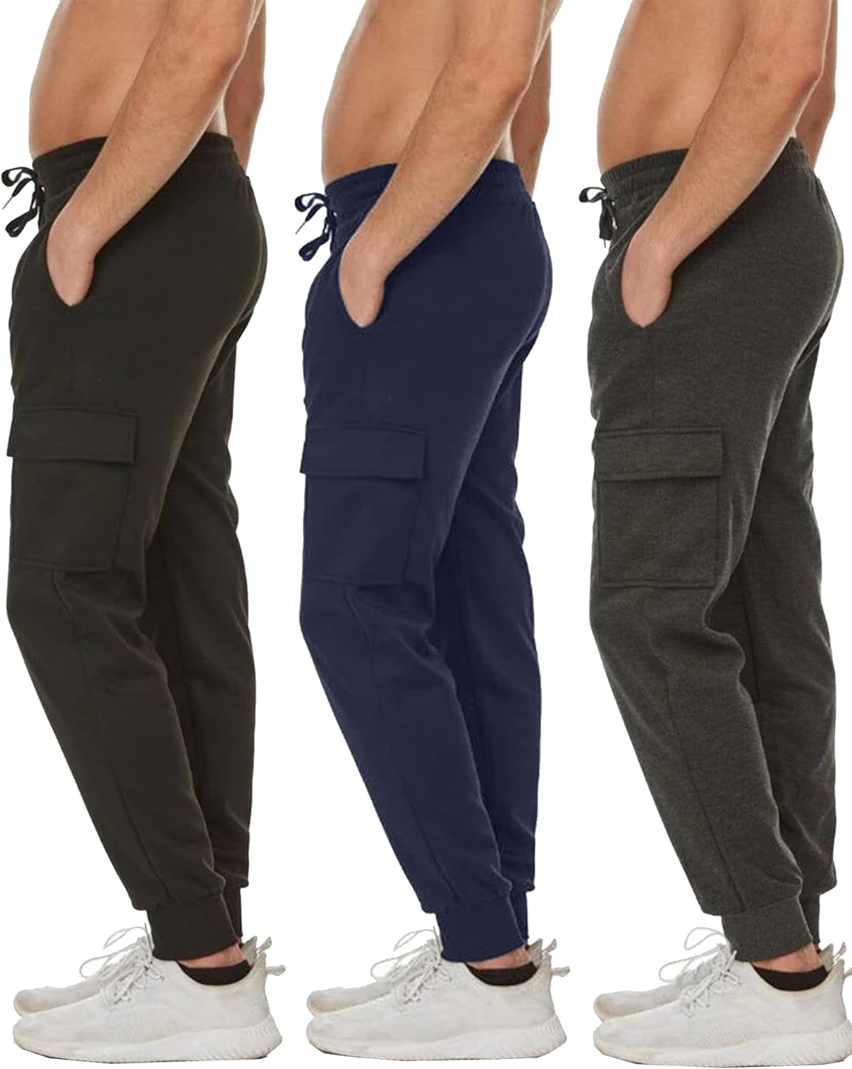 Upgrade your casual wardrobe with these fleece-lined cargo jogger sweatpants designed for comfort, warmth, and everyday versatility. Made from durable 100% polyester, these athletic bottoms offer a modern fit that works well for active days or relaxed downtime. The soft fleece interior provides added warmth, making them ideal mens fleece sweatpants and comfortable fleece sweatpants men for cooler weather. Designed with function in mind, the joggers include two side pockets and two cargo pockets with Velcro closures so you can securely carry daily essentials. The elastic ribbed waistband with adjustable outer drawstring provides a flexible personalized fit that stays comfortable throughout the day. These versatile joggers work well as sweat pants, practical mens sweat pants, and comfortable men joggers for daily wear. They are also great gym sweatpants, reliable jogging pants for men, and convenient workout sweatpants for light training or outdoor activity. Their relaxed design makes them suitable mens shorts casual alternatives during travel or everyday errands while still functioning as dependable mens sweatpants joggers and jogger sweatpants for lounging, commuting, or staying active. Whether worn as men's sweat pants, classic mens sweatpants, or comfortable fleece joggers, these imported men’s sweatpants combine warmth, durability, and easy care. Simply machine wash cold to keep these versatile men's sweats looking fresh and ready for everyday use.