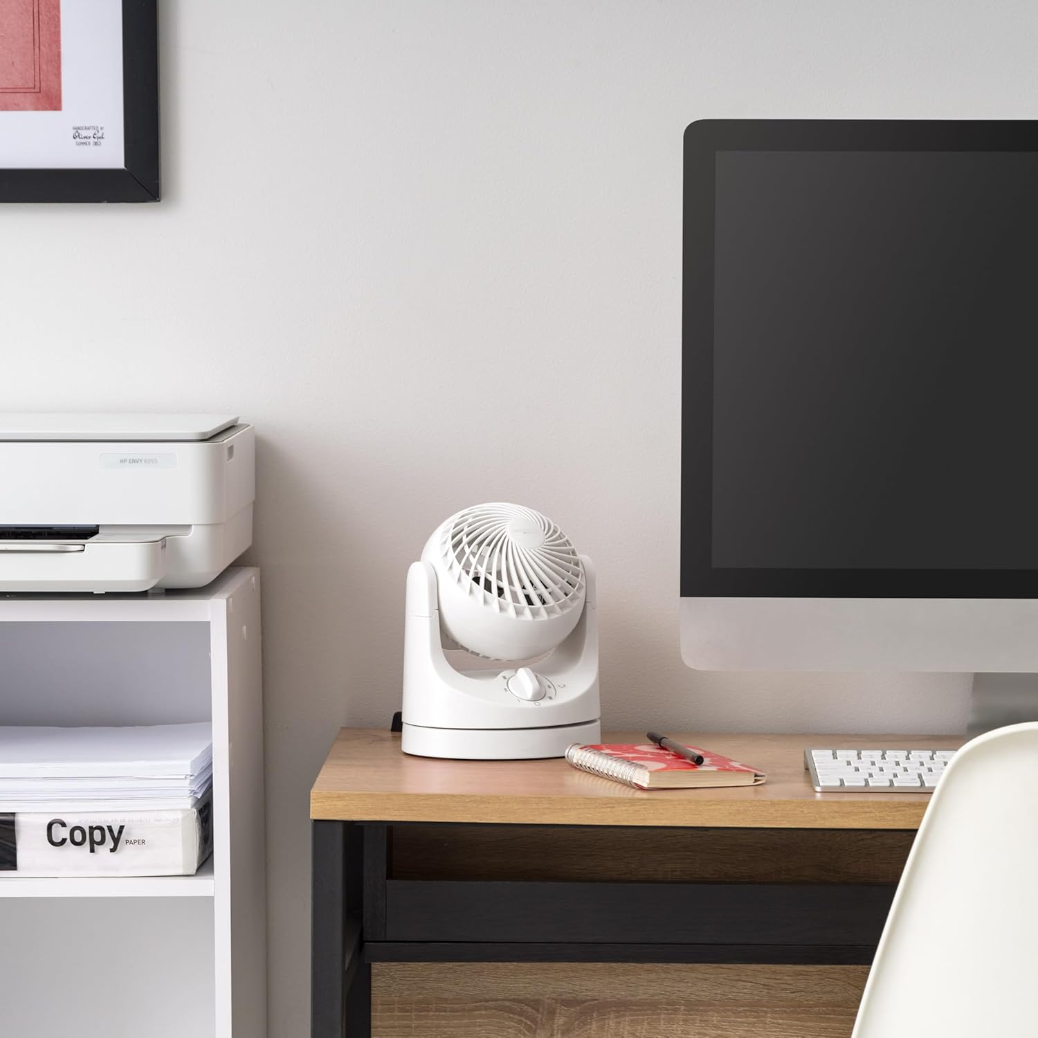 Perfect for the office, home or a dorm room, the WOOZOO personal fan offers powerful cooling air while compact size unit saves space. The adjustable fan head pivots vertically from 22.5 to 90 degrees, with three speeds settings on tabletop circulator to meet your cooling needs. Enjoy extra-quiet cooling on the virtually silent “low” setting. Desktop fan has a 55” cord, making it easy to reach the outlet.