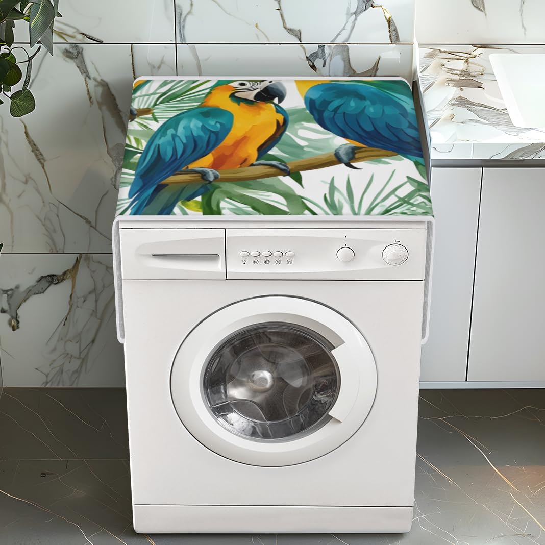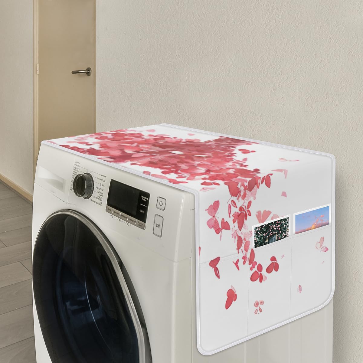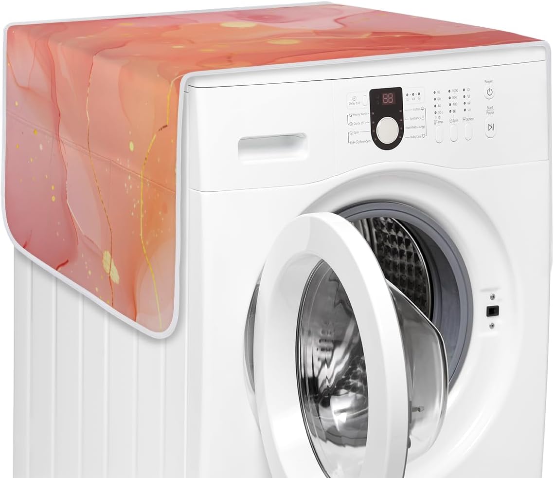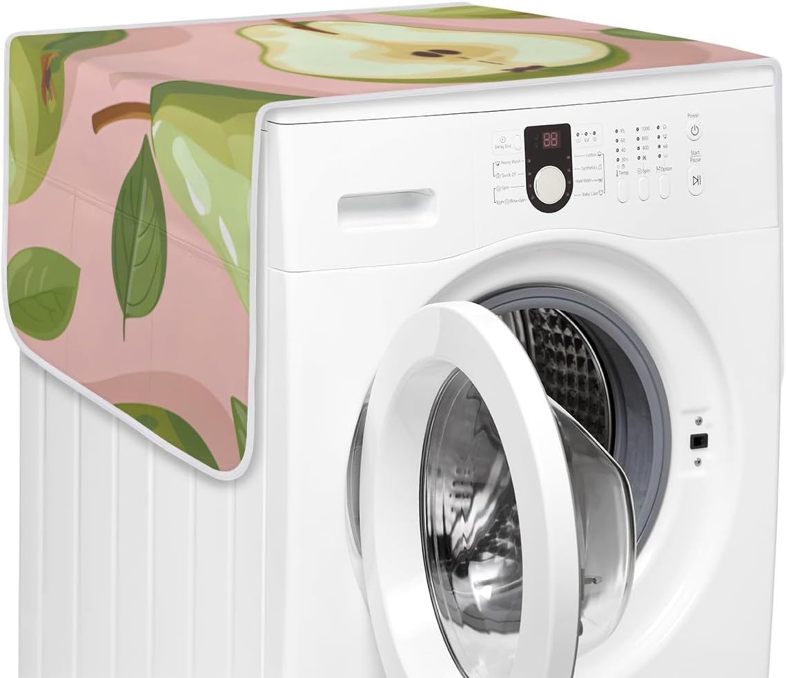 Description: Packing includes: 1 x Washer Dryer Dust Cover Product size: 30.9 * 18.5 inches. Features: Unique Design:The dust cover of the dryer has three side pockets on the left and three side pockets on the right.The edge is reinforced and sewn to make the refrigerator and washing machine top cover more strong,with a large capacity and convenient storage. Washing machine dust cover,made of waterproof polyester fiber and foldable,washable design,cover the refrigerator and washing dryer,decorate the home. Modern stylish style,pockets on each side,convenient for storing small items and saving space. Easy to clean:Machine or Hand Washable.Do not bleach. Multi-purpose:In addition to being used as a cover for washing machines and dryers,the multifunctional cover can also be used as a cover for fridge cover,microwave ovens cover,audio covers and other electrical appliances top cover.Easy to match any style of refrigerator and washing machine.