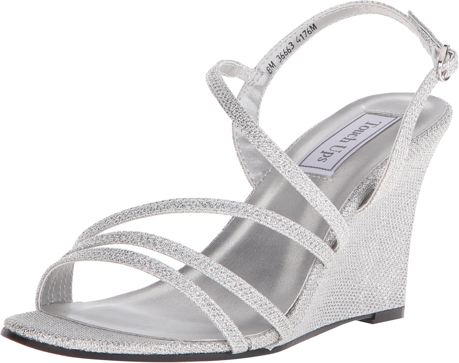 Paige is a best selling style from Touch Ups that features a nice wedge with a manageable 2 3/4 inch heel. Great for outdoor special occasions, this style is made from a nice shimmer material and features an adjustable strap for maximum fit.
