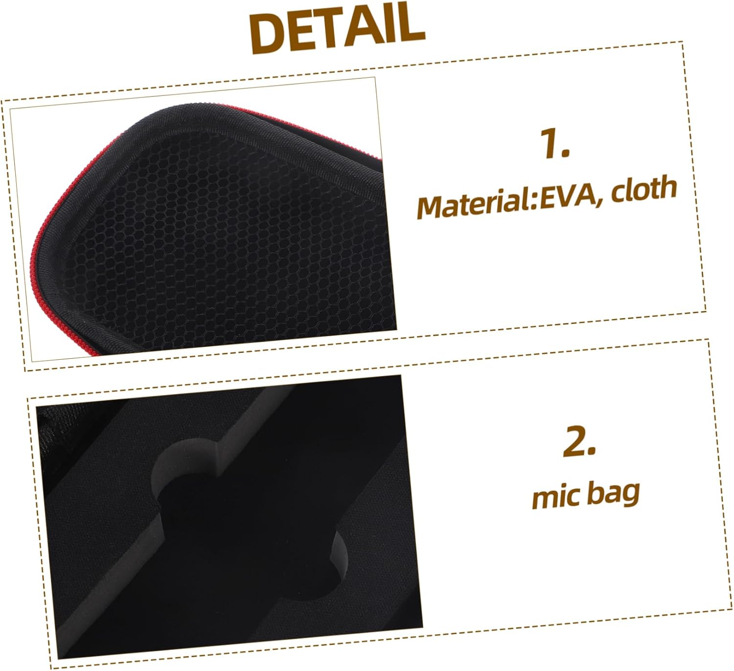 Package Include 4 x storage bag Characteristics -Size:31.00X10.00X6.50cm/12.18X3.93X2.55in travel mic storage case -Material:EVA, cloth mic storage pouch -Color:Black mic protective case -This multi-functional storage bag is perfect for organizing and accessories, keeping everything in its place and easily accessible purse. -Made from cloth and eva material, this case provides superior shockproof and -drop protection, safeguarding your valuable equipment mic pouch. -Built to last, this case is meticulously crafted for durability and reliability, ensuring it will withstand the test of time and frequent use portable mic pouch. - The mic case provides better protection against scratches, shocks, very practical and sturdy case for travel. -With its stylish and minimalist design, this case is versatile enough for any occasion, whether it's a professional event or a casual gathering mic protective case bag.Goods Description case with zipper The storage bag the carrying case is convenient for storing and protecting the and accessories. carrying case The Portable Multi-function Carrying Case is designed for easy carrying and use. case for outdoor The case provides shockproof protection for your equipment