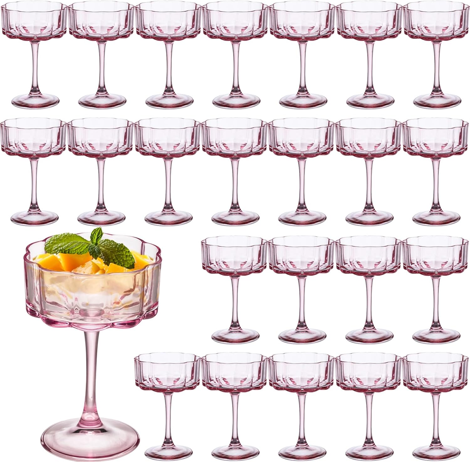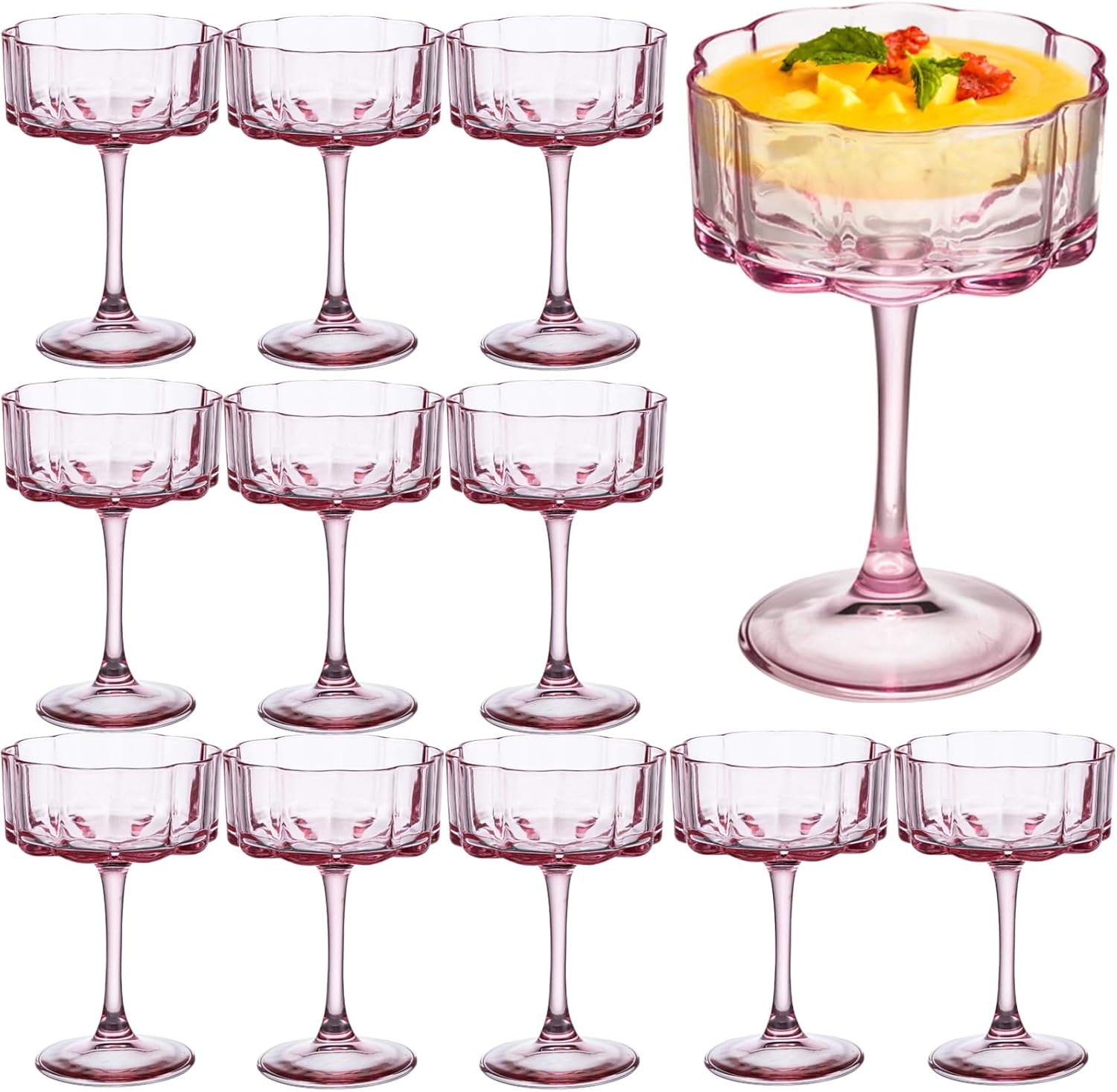 • 【Unique Design 】Unlike any other cocktail glasses, it features a beautiful flower wave to make it look like a work of art. Unleash your inner mixologist by adding these ripple ribbed glasses to your bar. Unique flower high clear stemmed glassware wedding party bar glass drinking cups. In addition, the unique design will give your cocktail more swirling space and help aromatics release more slowly for maximum enjoyment.